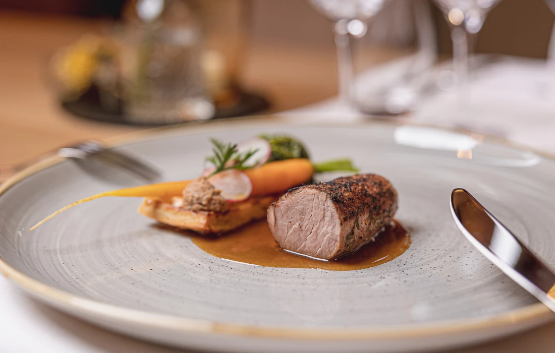 Die neue Herbstkarte besticht durch Kreativität und Regionalität. So finden sich Gerichte wie Galantine vom Kaninchen mit Pistazien und Estragon-Aioli oder eine samtige Hokkaidokürbiscrèmesuppe mit knusprigem Davoser Bergkäse auf dem Menü. Auch Wildgerichte spielen eine tragende Rolle: Das Duo vom Reh mit Rücken und Ragôut oder das raffinierte Wildschweinragout mit Petersilienspätzle und Hagebuttencreme vereinen herbstliche Aromen. «Mein Ziel ist es, die Alpenküche neu zu denken – ohne ihre Wurzeln oder Emotionalität zu verlieren», erklärt Grabner. «Mir ist wichtig, dass wir eine qualitative, moderne Küche präsentieren die für Jedermann zugänglich ist» .